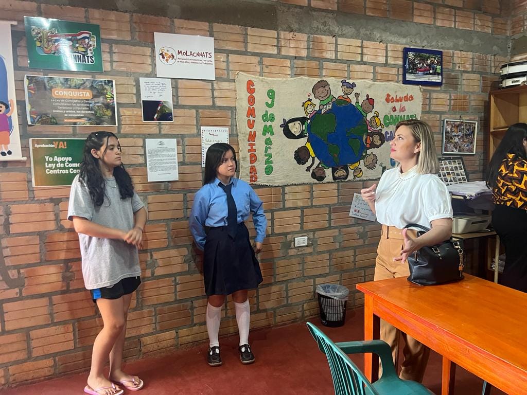 En un gesto significativo de apoyo a la participación activa de Niñas, Niños y Adolescentes, la Vice Ministra del Ministerio de la Niñez y la Adolescencia (MINNA), Verónica Arguello, encabezó una visita a la comunidad de Añua Róga en Ciudad del Este. La visita contó con la presencia de la coordinadora regional del MINNA, Liz Cardozo, así como tres funcionarias del Ministerio. Desde la Asociación Callescuela, Julia Cardozo, Carlos Flecha, Magnolia Godoy y Aramí recibieron a la delegación, mientras que desde la CONNATs, Fabiola Fernández, Erika Bogado, Junior Fernández y David Flecha estuvieron presentes para darles la bienvenida.