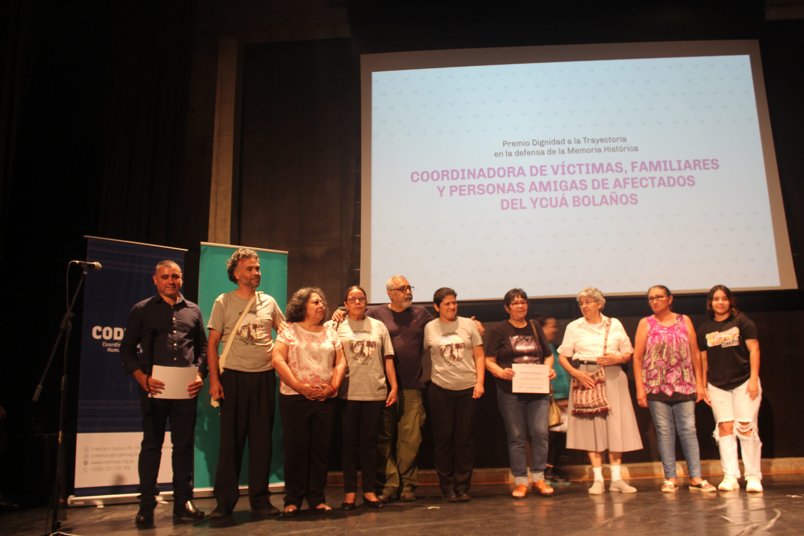 - Premio Dignidad: A la persona u organización que se destacó en la promoción, defensa y exigencia de los derechos humanos relacionados con la memoria y/o el ambiente sano durante 2023 en Paraguay.