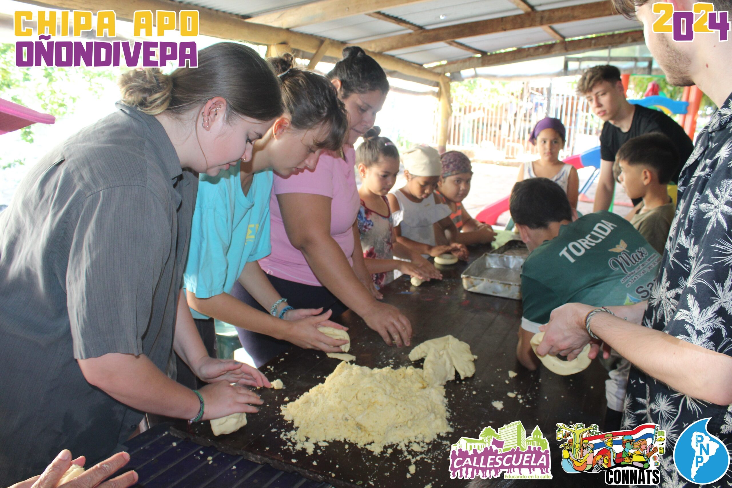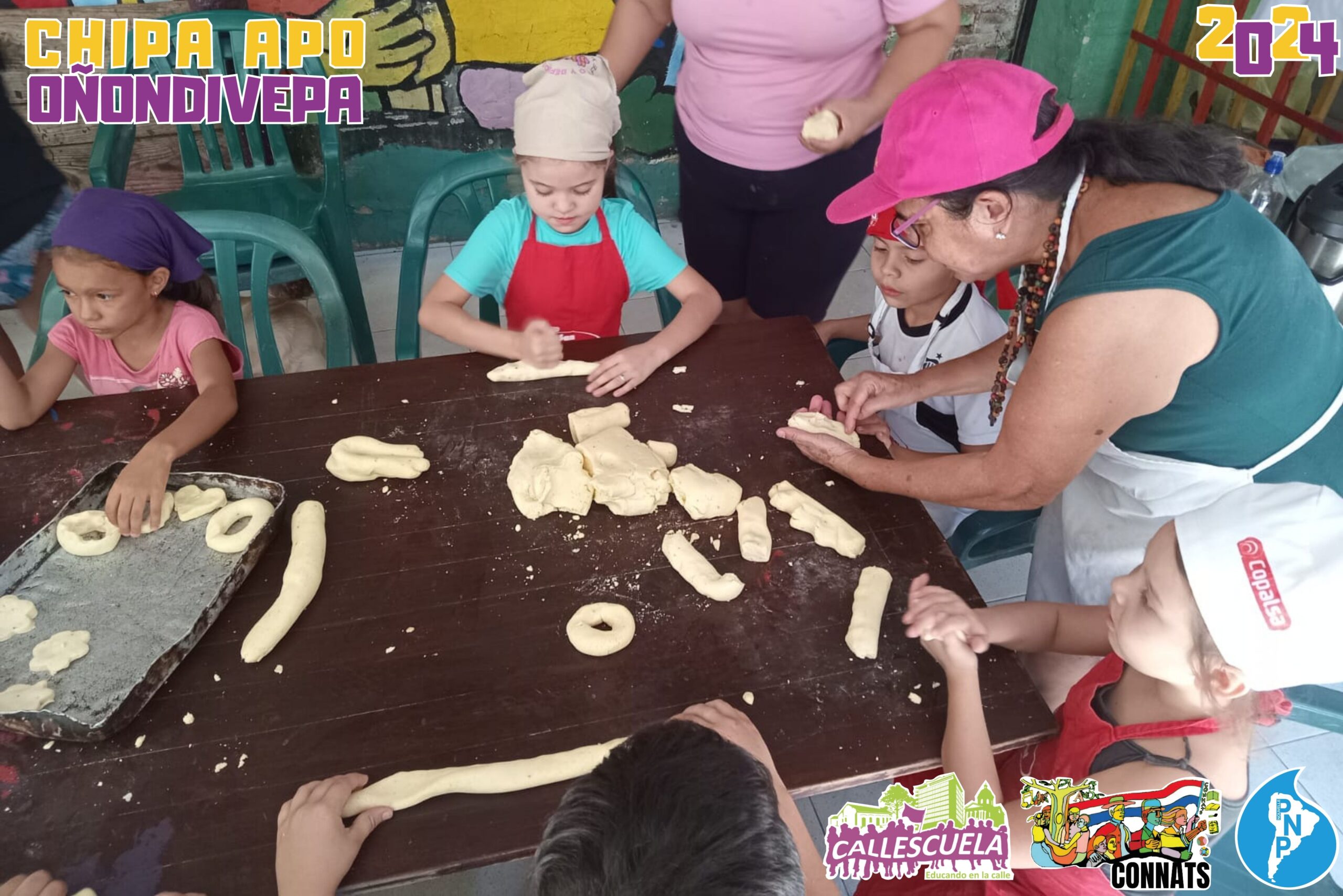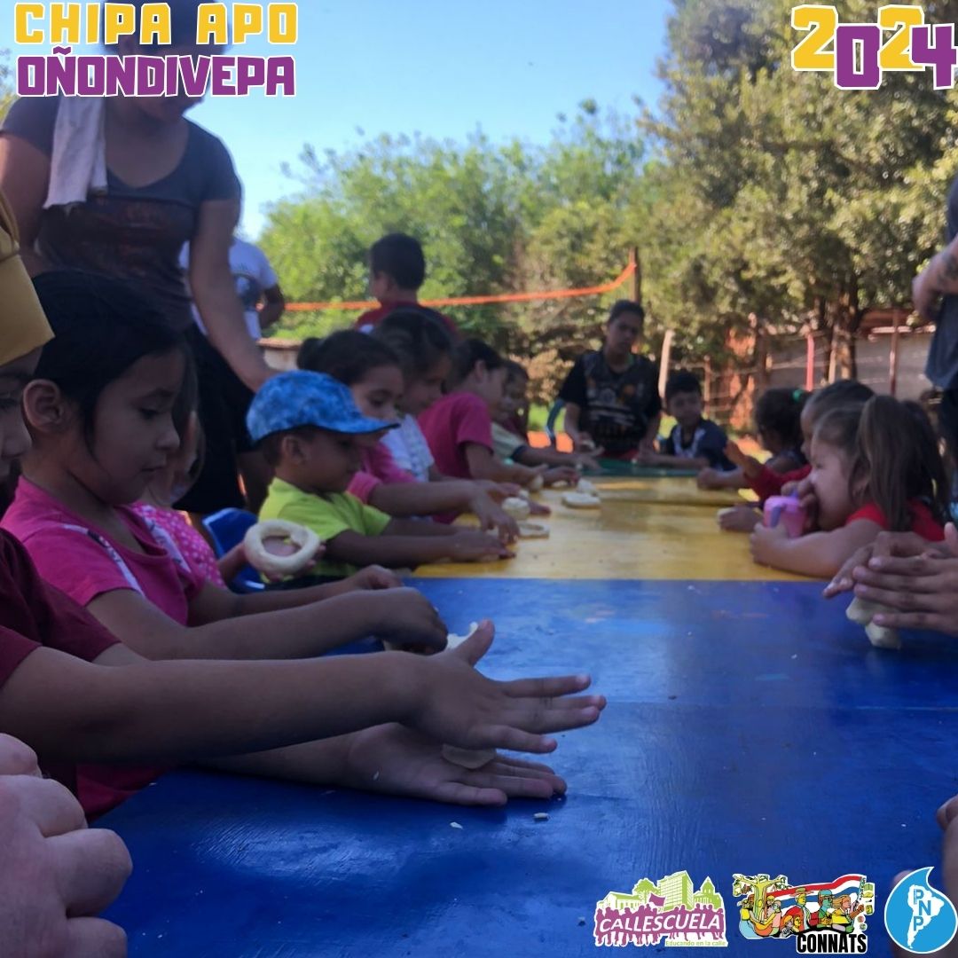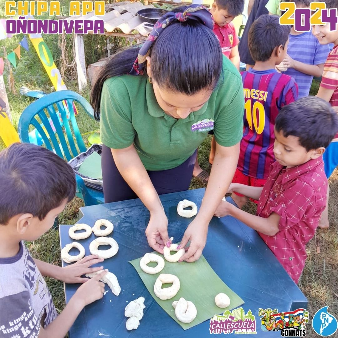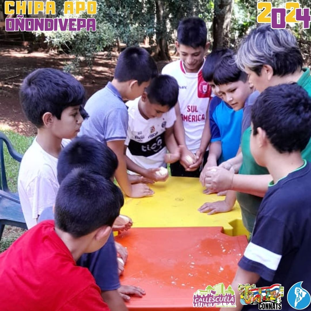 Los niños, niñas y adolescentes de los Grupos de Base de la CONNATs prepararon las deliciosas chipas durante la Semana Santa. Algunas mamás también se unieron para ayudar y asegurarse de que todo saliera bien. Los chicos estuvieron contentos de poder hacer las chipas y compartir con sus compañeros.