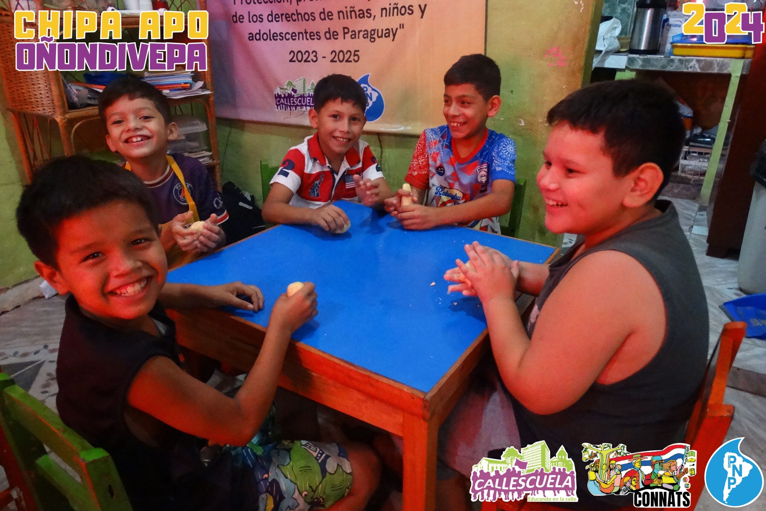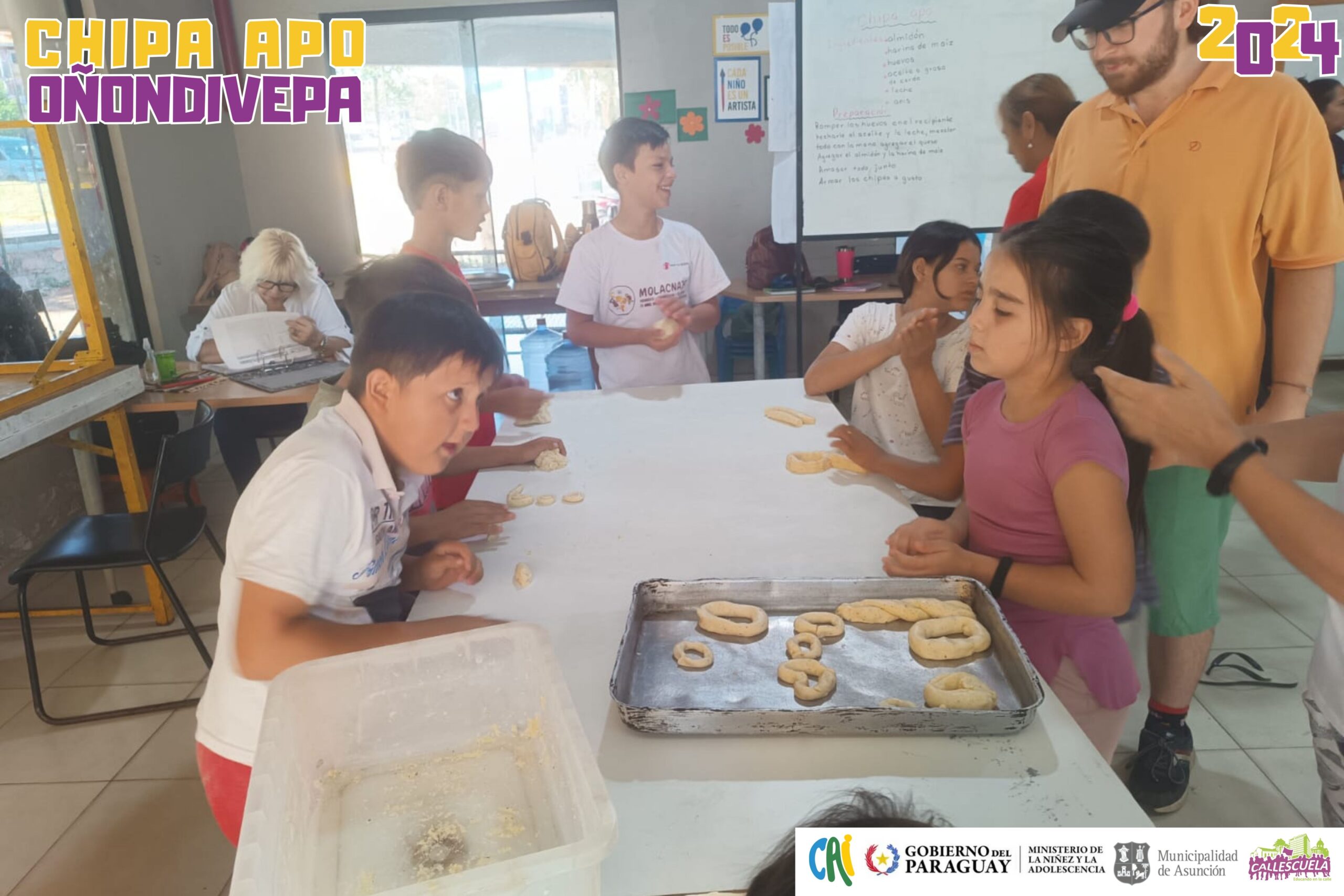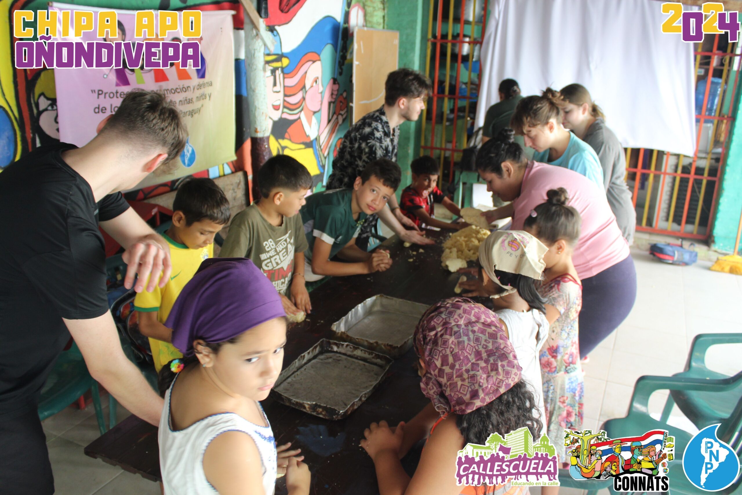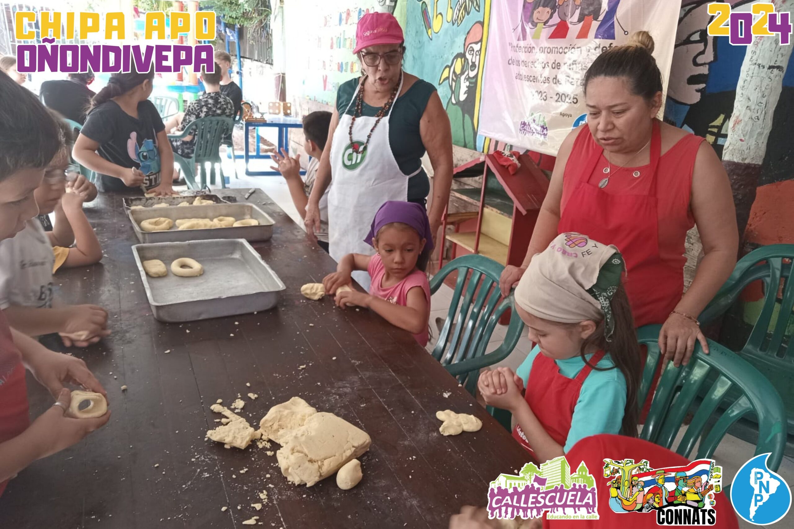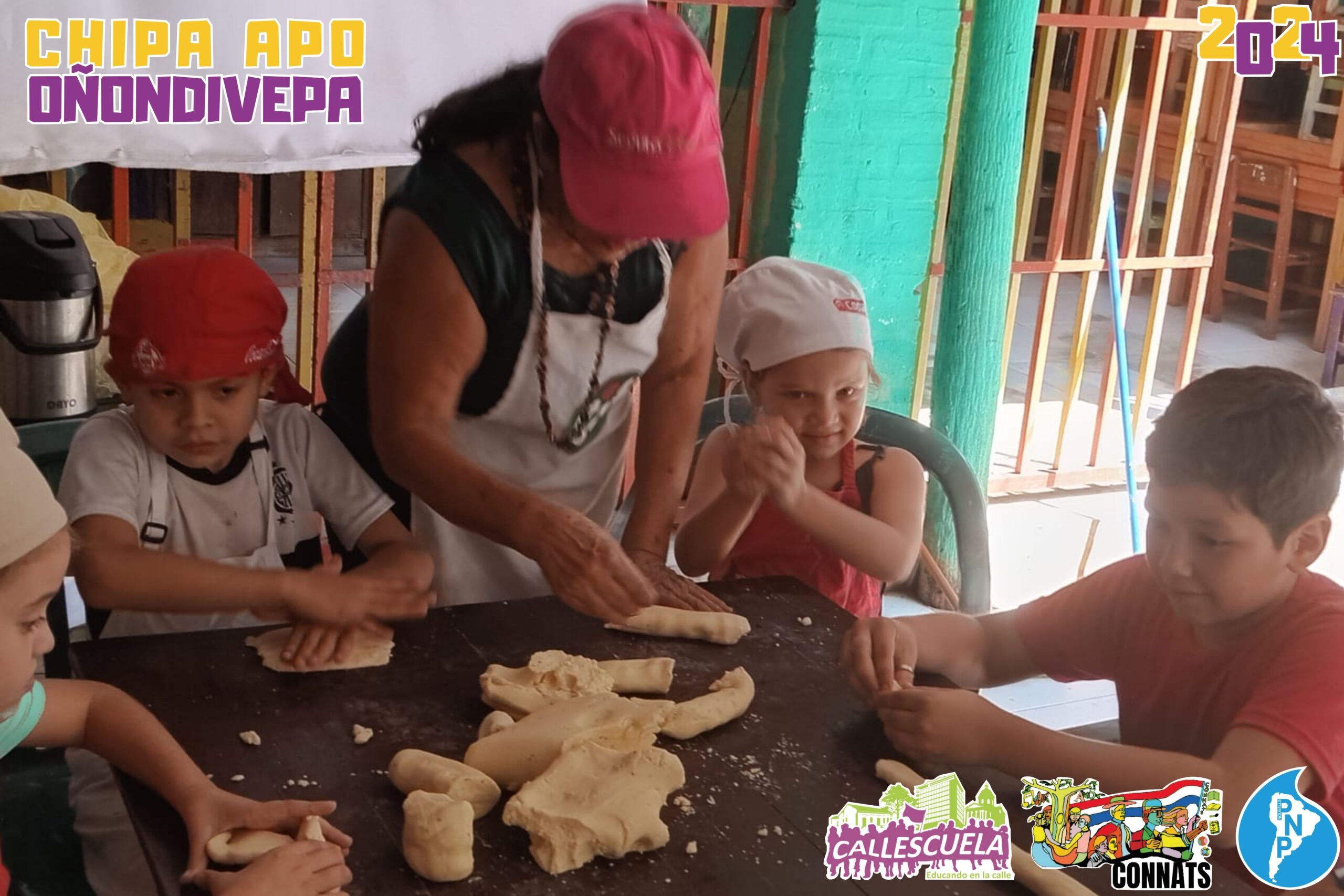 Los niños, niñas y adolescentes de los Grupos de Base de la CONNATs prepararon las deliciosas chipas durante la Semana Santa. Algunas mamás también se unieron para ayudar y asegurarse de que todo saliera bien. Los chicos estuvieron contentos de poder hacer las chipas y compartir con sus compañeros.