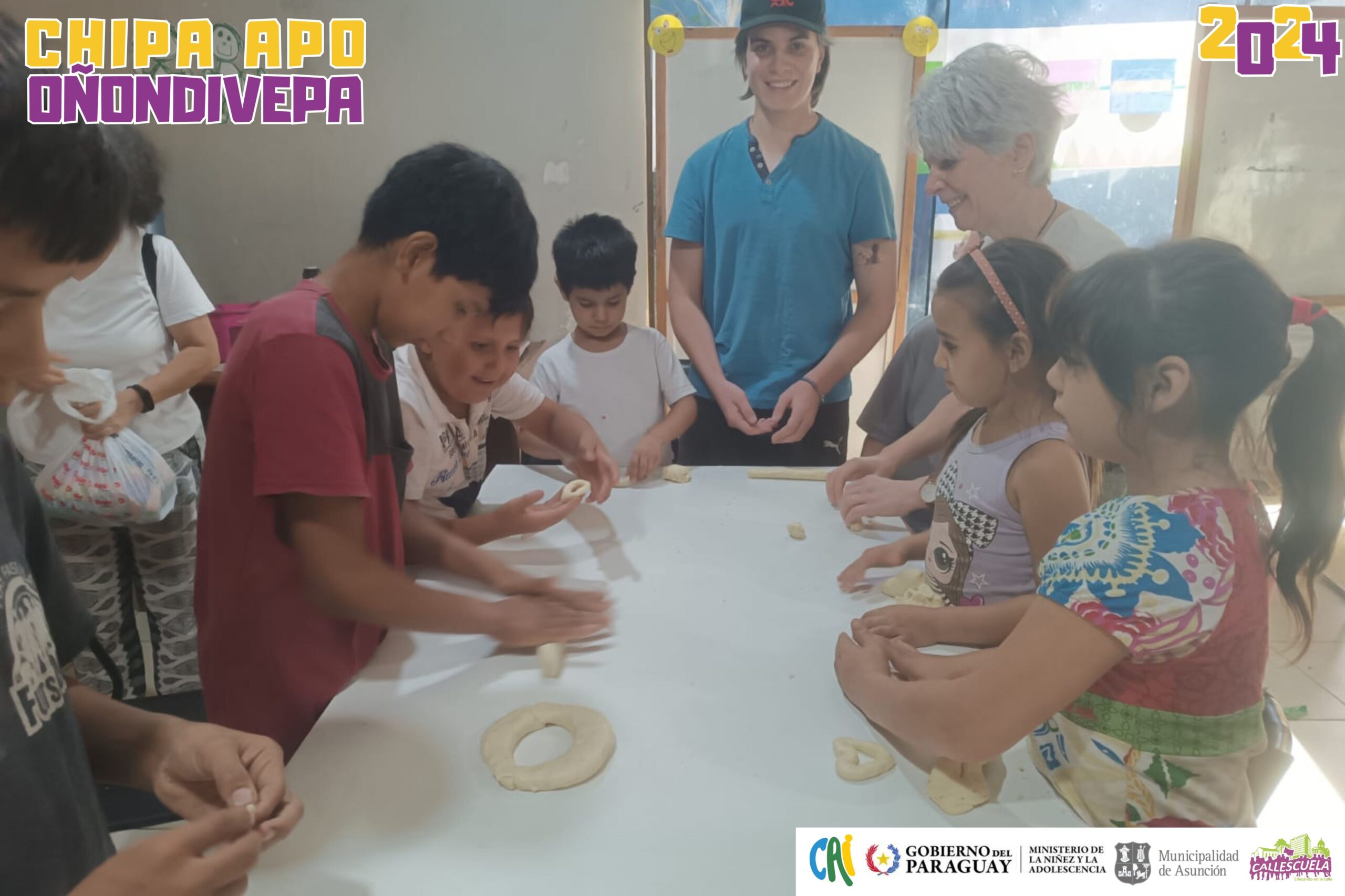 Después de terminar las chipas, los chicos se reunieron para merendar todos juntos y probar las delicias que habían preparado. Al final, se repartieron las chipas que sobraron para llevar a sus casas.