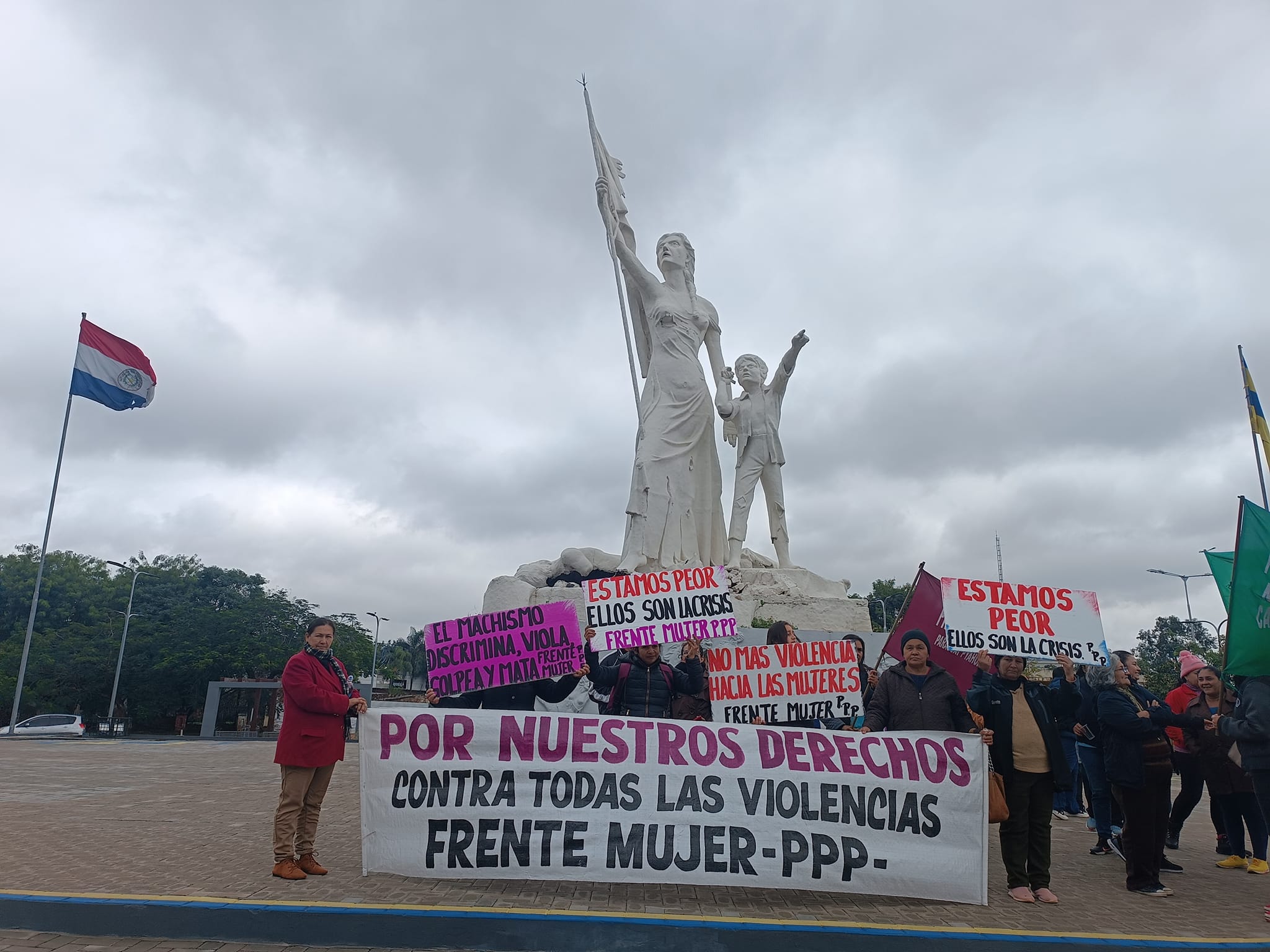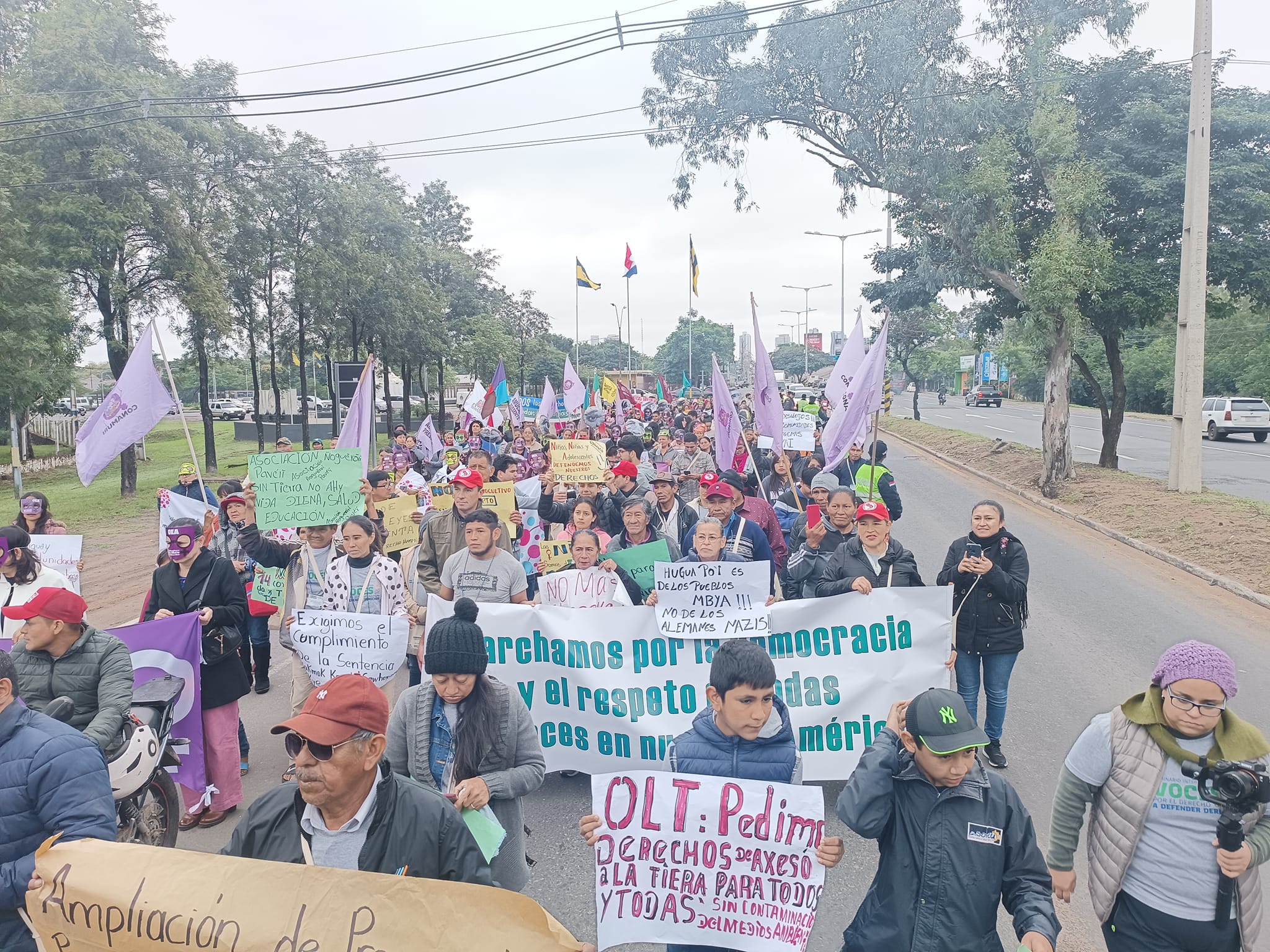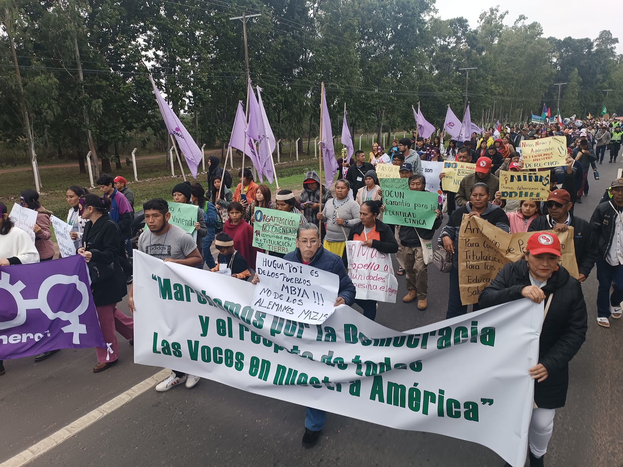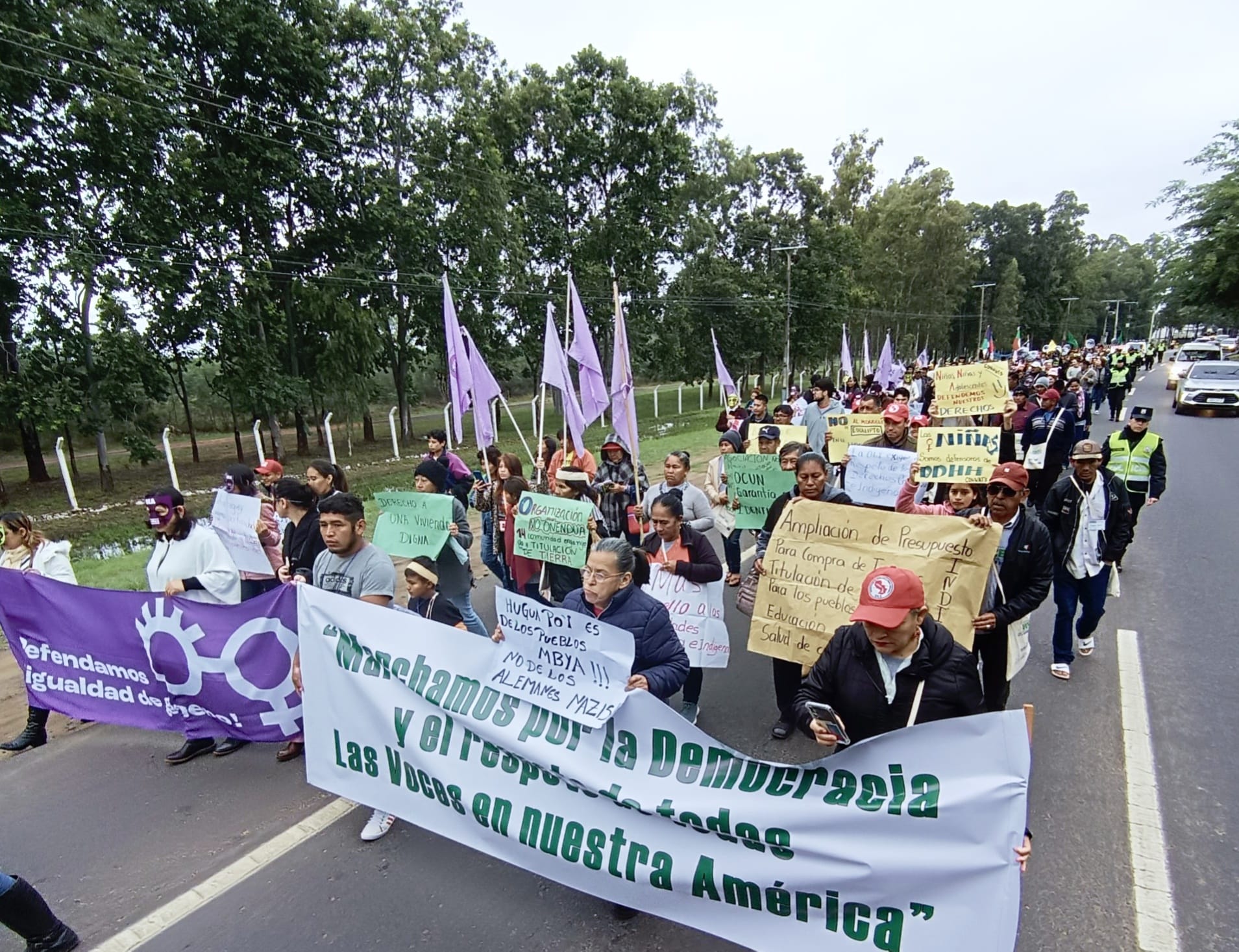 Partimos desde la Plazoleta de Las Residentas hasta las inmediaciones de la Conmebol, donde leímos un pronunciamiento conjunto de organizaciones sociales, indígenas, campesinas, de mujeres y feministas, elaborado en el Seminario Internacional “Voces por el Derecho a Defender Derechos”.